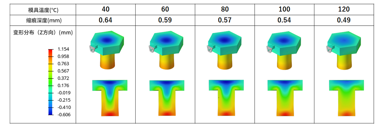 制品表面的缩痕量比较(确认模具温度依存性)
