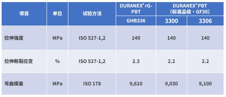 表1.新产品DURANEXⓇ rG-PBT与DURANEXⓇ PBT代表物性值的比较